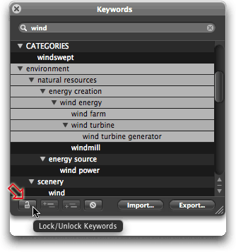 If you wish to prevent un-intended additions to your controlled vocabulary keyword list, there is now an option to "lock" the Keywords HUD. The toggle is located in the lower left corner of the Keywords HUD. Simply click on the unlocked icon to lock the vocabulary. Click again to unlock.