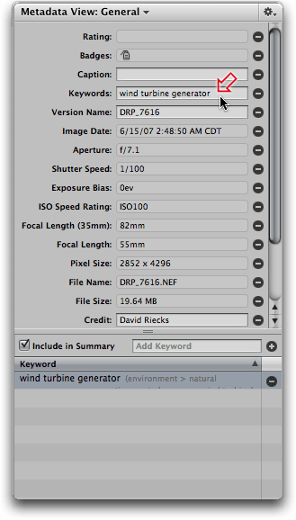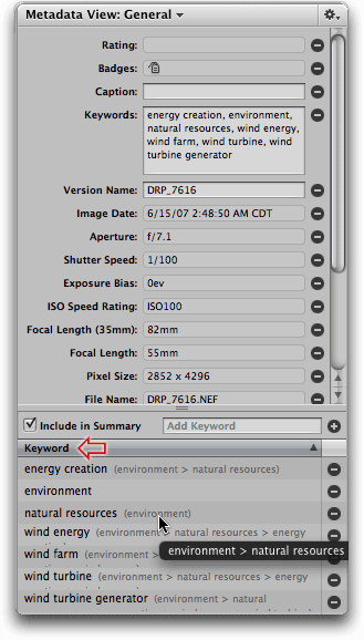 (aka the "metadata inspector") by clicking on the Keywords Tab/button