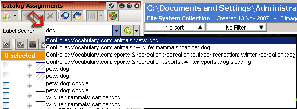 You are now ready to use the CVKC library by assigning images to the CV-catalog labels. This can be done by selecting any number of thumbs and pressing the F6 or Ctrl+F6 buttons. You can also drag the selected thumbs to the label in the hierarchy and the Catalog Label will be assigned to those images.