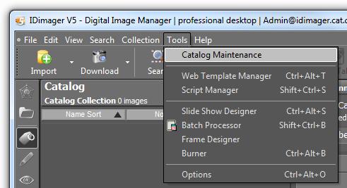 From the Tools menu in IDimager v5 select Catalog Maintenance as highlighted in the image below.