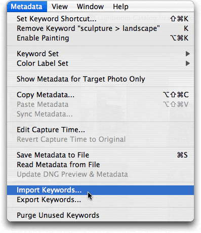 1. From the Metadata menu item, scroll down until you see the option to "Import Keywords."