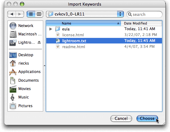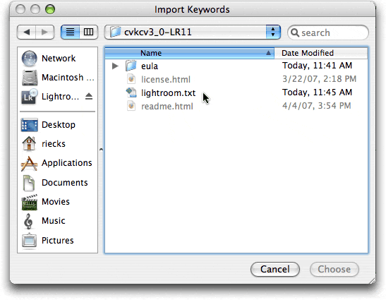 UPDATE: If you are installing the CVKC before upgrading from Lightroom 1.x. There is a bug that occurs in hierarchical keyword catalogs when you update Photoshop Lightroom 1.x to Lightroom 2. In version 2.0 the "Include On Export" keyword tag option is not selected, so that when you export your photos from Photoshop Lightroom 2, your keywords are not exported with your photos. Note, this is specific to those that "upgrade" Lightroom and does not affect those that are starting with the full version of Lightroom 2.0 that was just released. If you installed the CVKC in Lightroom 1.x and have upgraded to version 2, download and run the script available from the Adobe Self Service site.