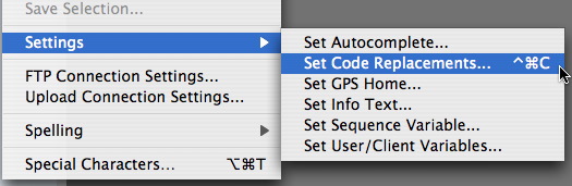 order to pull the values for replacement. From the Edit menu, Choose Settings and then Set Code Replacements...