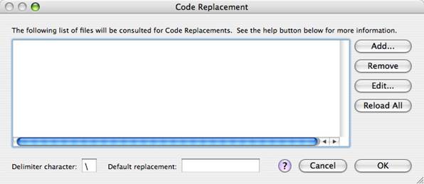 In the resulting dialog, you will need to load the UTF-8 text file(s) that you have prepared. This is where you define which files contain your Code Replacement data (note that there can be more than one). Where multiple codes exist, the most recently loaded replacement takes preference.