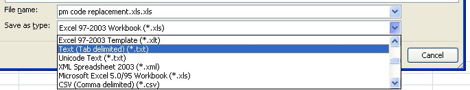 out as a tab delimted text file from Excel in Notepad, by going to the