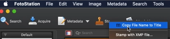 10. To apply to one or more images, select the image(s) you want to affect, and under the "Stamp" icon select the name of the macro you just created: "Copy File Name to Title" and release the mouse.