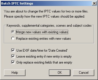 5. If you are applying to a number of files, you will see the Batch IPTC Settings dialog appear, and you need to indicate how you want to apply the changes.