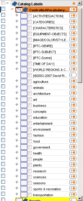 The Controlled Vocabulary Keyword Catalog or CVKC, can be imported into version 4.0 or later of the IDimager image database using a Text file formatted specifically for IDimager and saved with a unicode encoding. When installed, the the Catalog Assignment section will look like the image shown below. The full version 3.x of the CVKC contains approximately 11,000 terms organized in a hierarchical structure. For detailed information on how to install the CVKC see the IDimager support page. The CVKC-FAQ (Frequently Asked Questions) page covers other specific questions. A few of the more than 30 top level hierarchies can be seen in this screen capture.